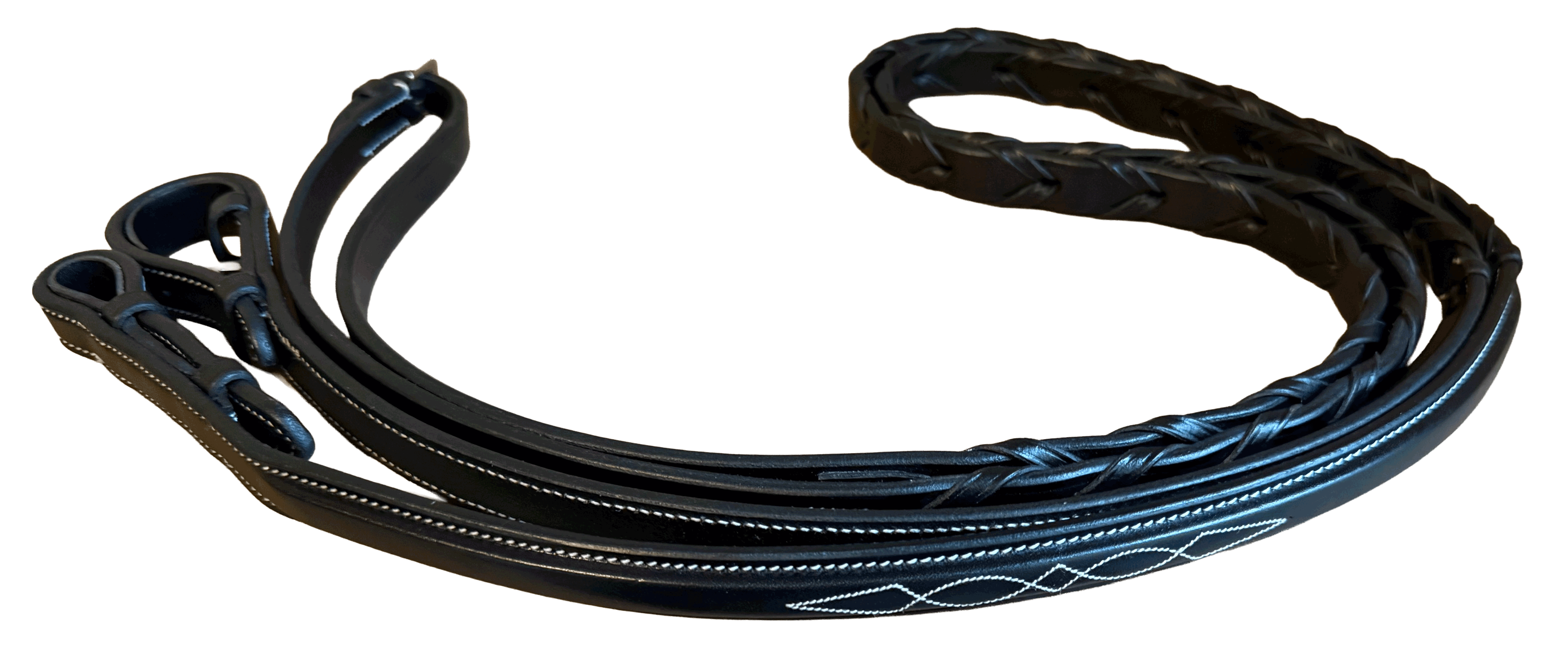 Black Fancy Stitched reins in 3 sizes.