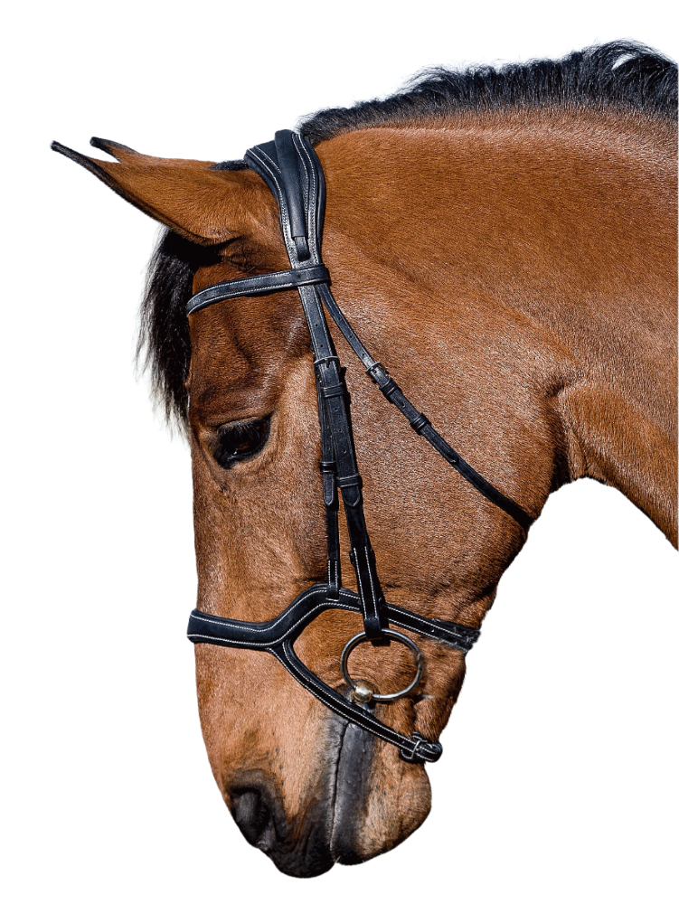 This SALE bridle has a comfortable crown with thicker padding on either side of the pole to reduce the pressure on top. The comfortable noseband had a nicely padded crank buckle system with slots to keep the chin pad in line. The raided fancy stitched browband completes the classic look.